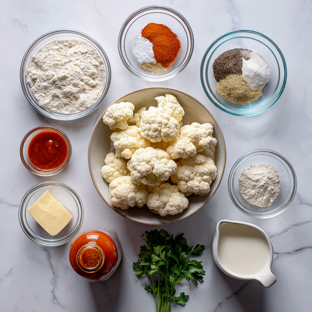 For this Buffalo Fried Cauliflower recipe, you’ll need the following ingredients: