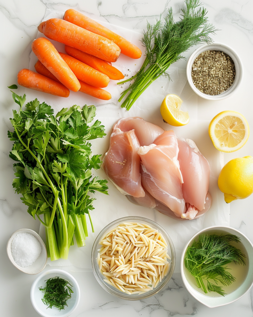 Below is a complete ingredient list for a classic Mediterranean lemon chicken soup that serves 6 (about 1 ½ cups per serving). Feel free to adjust quantities based on your preferred serving size or dietary needs.